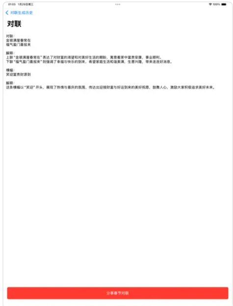 1. 精美的春节主题界面,让用户在生成对联的过程中感受节日氛围。