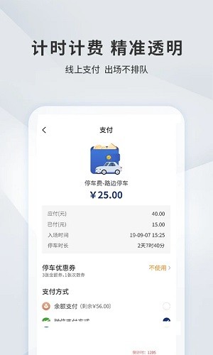 4. 缴费功能:用户可以在应用内直接支付停车费用,避免现金支付带来的不便。