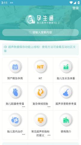 孕生通胎儿医学计算器是一款专门为孕妇提供的生理周期和胎儿发育的手机应用程序。用户只需输入预产期或末次月经时间,即可实时获取胎儿发育情况和生理周期信息。