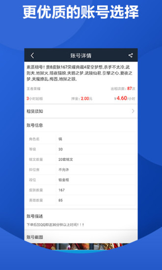 用户可以在这里租用各种游戏的高级账号,享受更好的游戏体验。