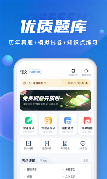 界面简洁清晰,操作简单易上手,适合各种年龄段的考生使用。