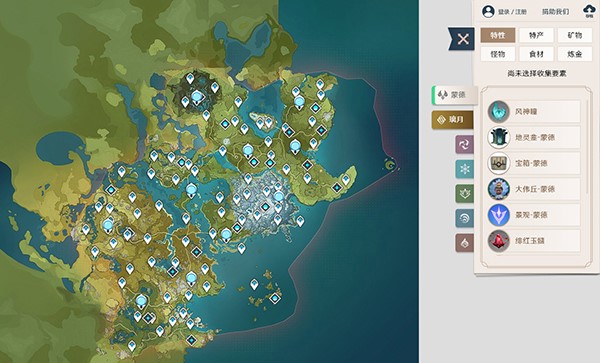1. 地图浏览:展示原神游戏地图,包括地标、资源点、宝箱等信息。