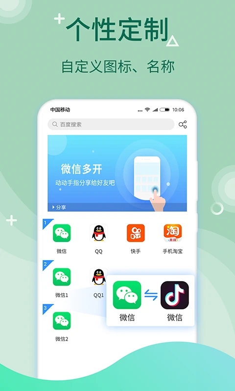 支持多开多个微信分身,可以同时登录多个微信账号。