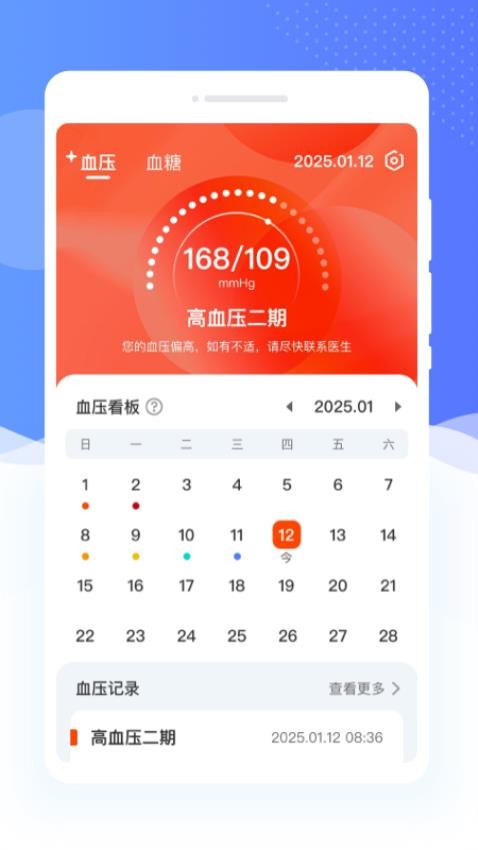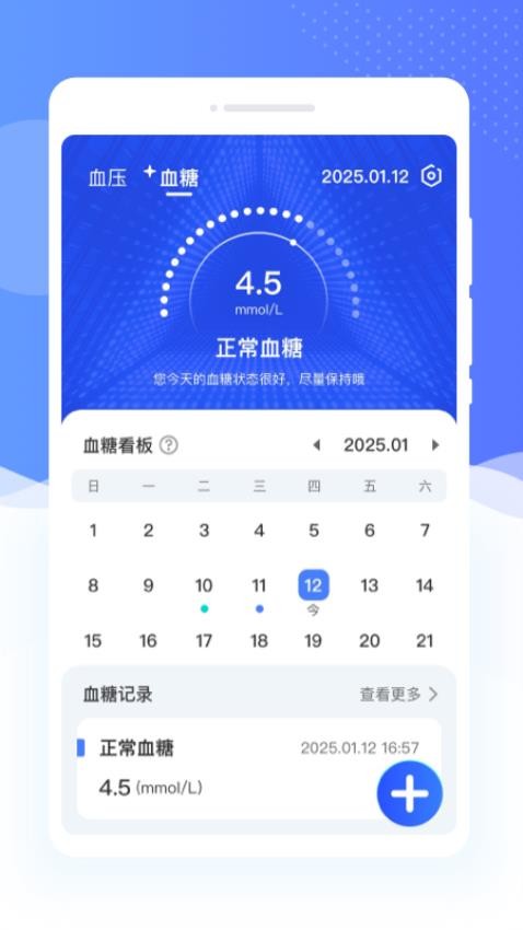 1. 安康血糖血压仪是一款功能齐全的健康管理应用程序,适合需要定期监测血糖和血压的用户使用。