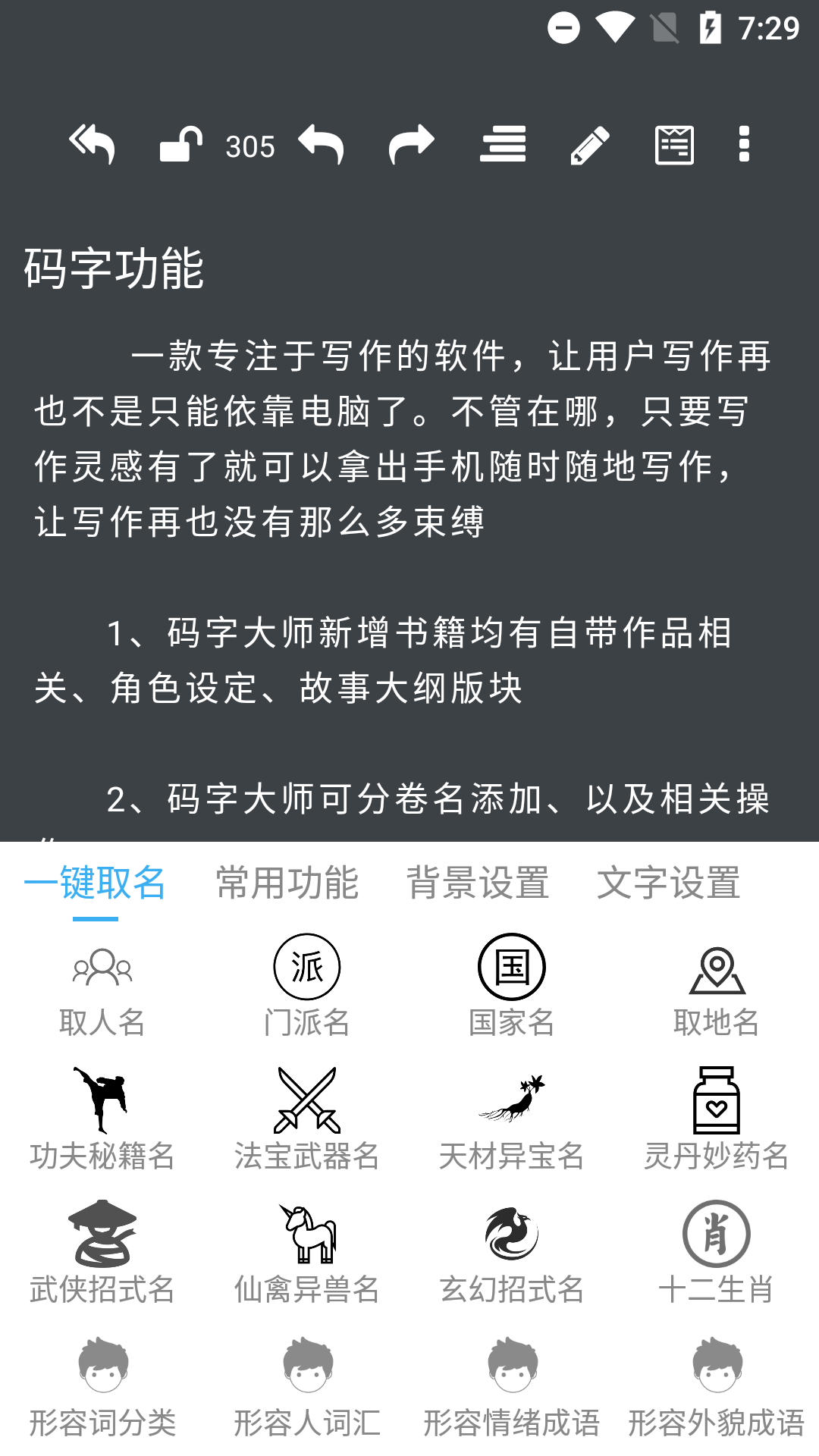 码字大师APP功能: