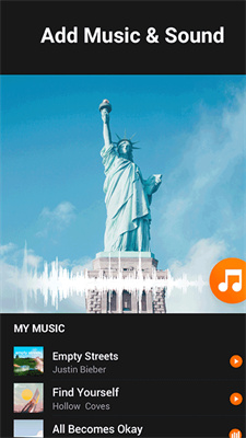 4. 支持添加背景音乐:用户可以在视频中添加背景音乐,并调整音频的音量;