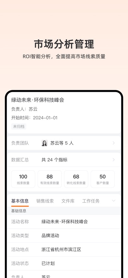 销售线索管理:帮助用户跟进销售线索,及时录入线索信息、设置提醒任务,提高线索转化率。