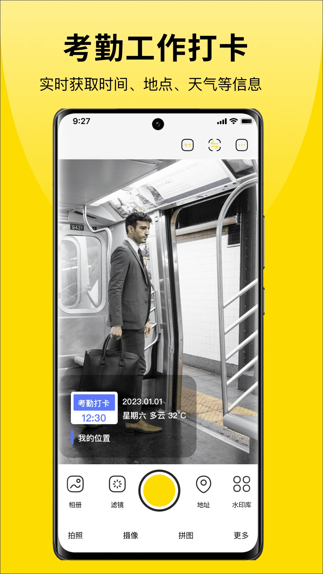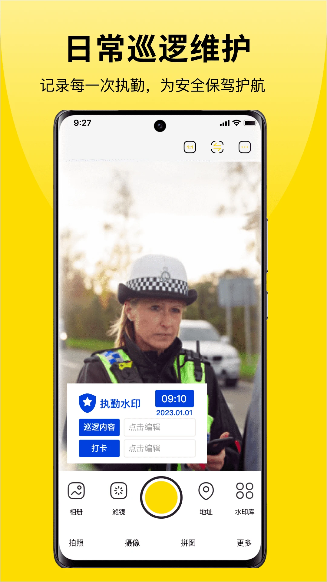 用户可以轻松拍摄高清照片,并自定义添加水印内容。