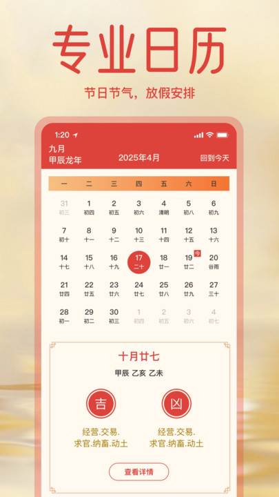 3. 提供节气信息,让用户了解当天的节气是什么。