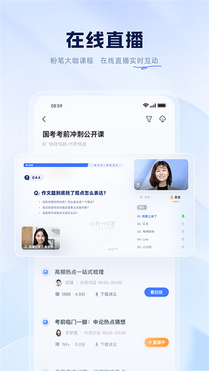 2. 提供在线直播课程和录播课程,用户可以根据自己的时间安排选择合适的学习方式。