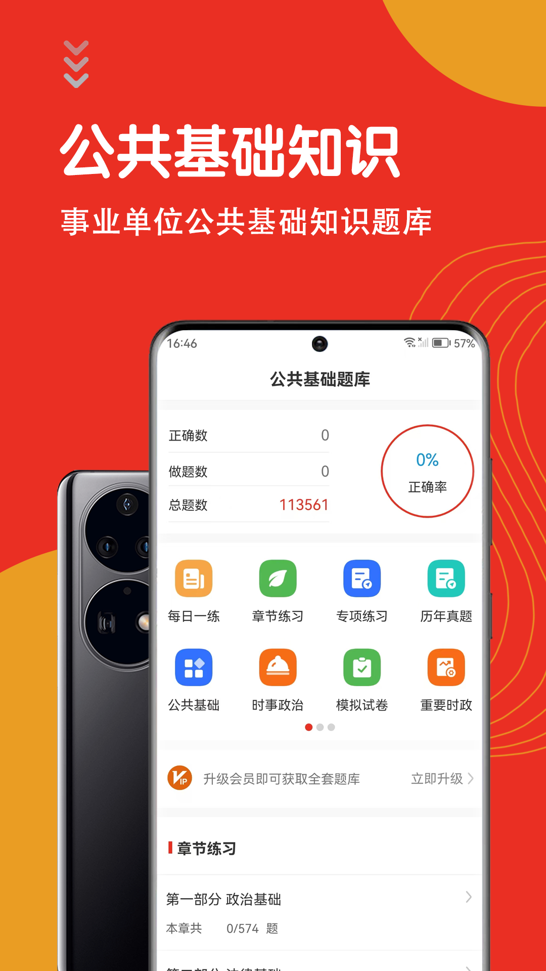 用户可以在手机上随时随地进行公共基础知识的学习和测试。