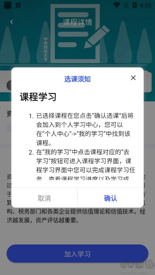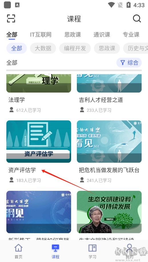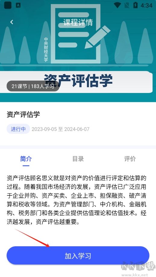2、寻找意向课程,例如资产评估学,点击进入详情页面。