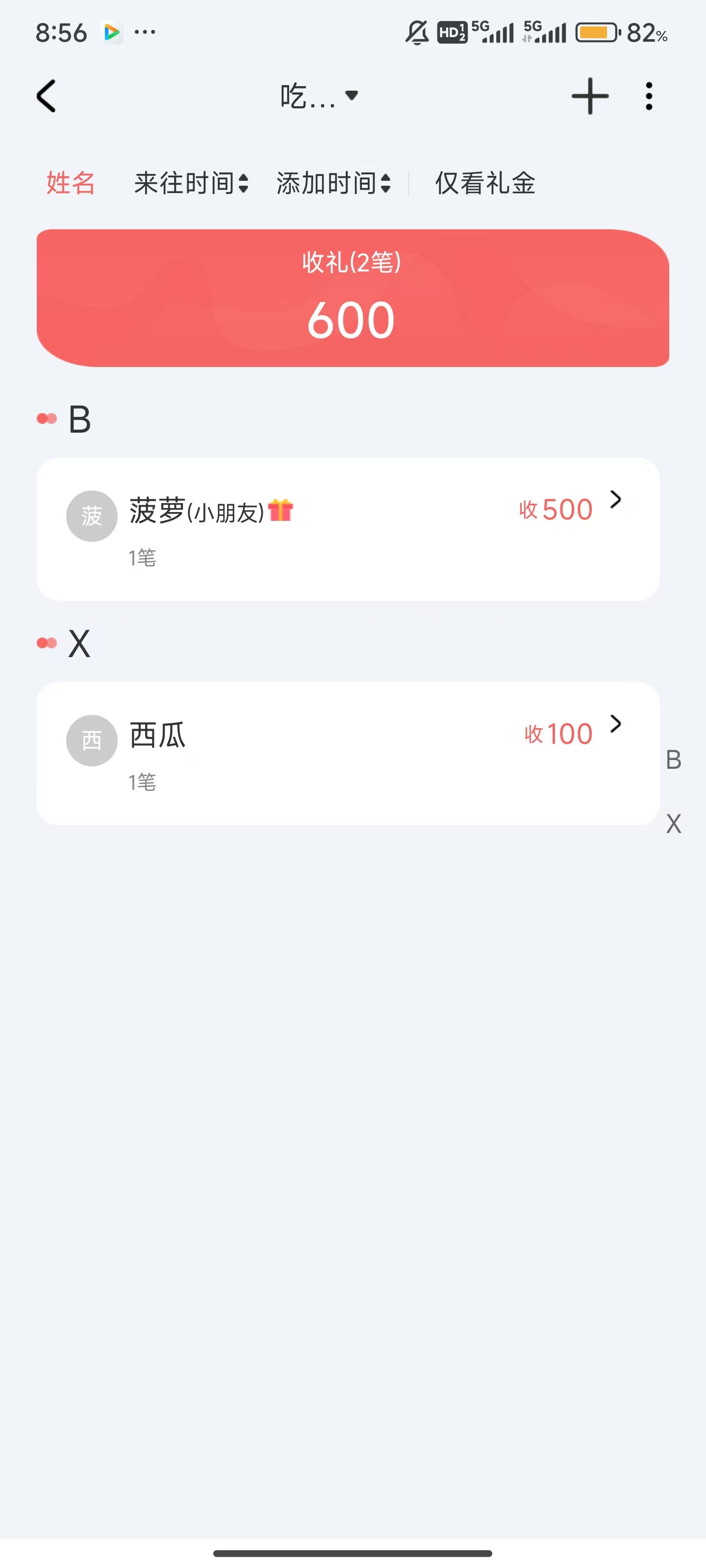 5.来往列表排序方式可自由设置(按姓名、来往时间、添加时间)。