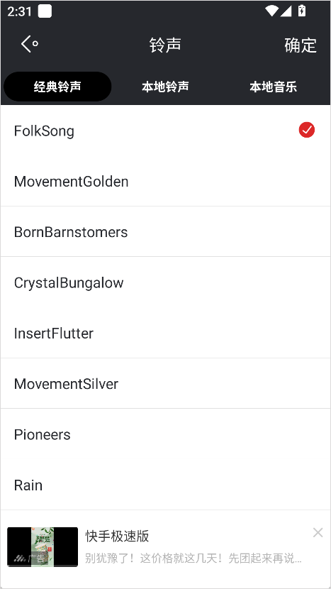4、从列表中挑选自己喜欢的铃声类型或音效;
