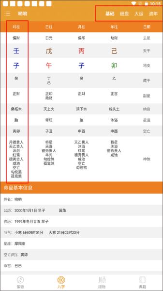 3、同类应用唯一免费先天八字命盘、大运八字命盘、流年八字命盘;