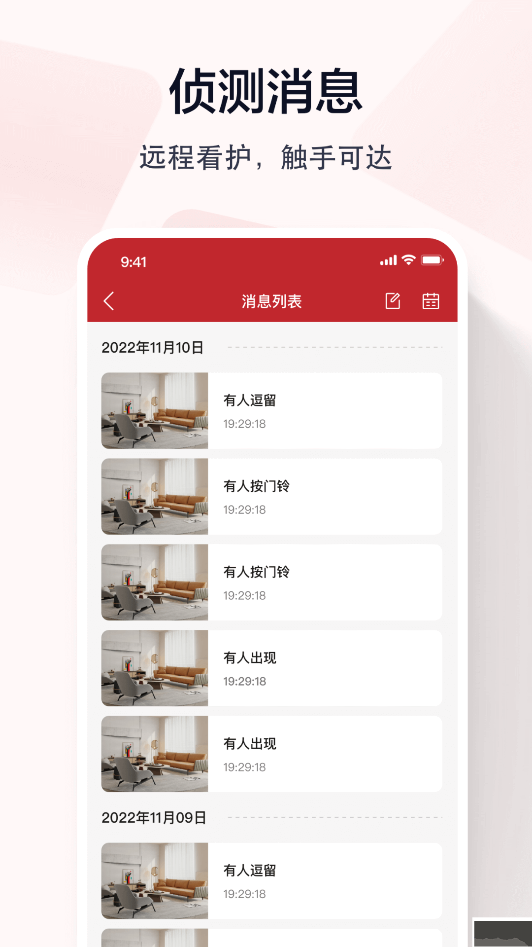 1、当检测到画面中出现移动物体或环境中有异常声响时,立即推送通知;