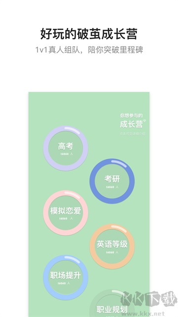 1、成长营地:涵盖考研复习、英语等级考试、高考备战等目标,亦可寻觅同伴共同前行。