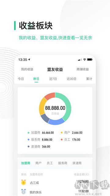 4.收益查看:专属收益板块,支持快速查看个人及盟友的收益情况,包括实时收益、累计收益、收益分成等,全面掌握盈利动态。