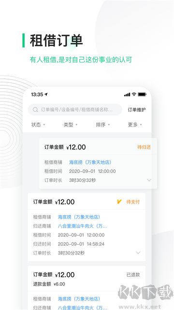 3.订单管理:可轻松查询所有租赁订单的详细信息,包括订单编号、租赁时长、费用明细、归还状态等,每笔订单一目了然,便于对账核算。