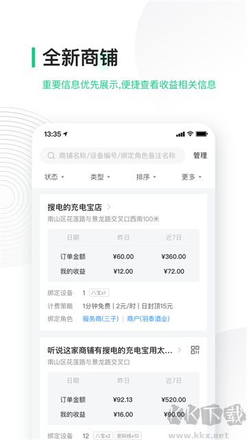 竹芒合伙人是一款由深圳市竹芒科技有限公司开发的、给共享充电宝代理商与合作伙伴打造的一站式业务管理软件。可以通过智能化的方式,帮助合作伙伴对铺设于全国各地的线下充电宝设备进行全方位的监管与运营。可以利用它实现智能化设备管理,包括对借出充电宝的实时状态监控、订单处理以及详尽的业务数据分析。感兴趣的朋友赶快下载使用吧!