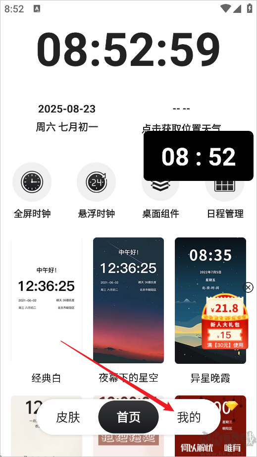 6、内置大量精美时钟皮肤,搭配可更换的主题背景,充分满足个性化装饰与时钟实用双重需求。
