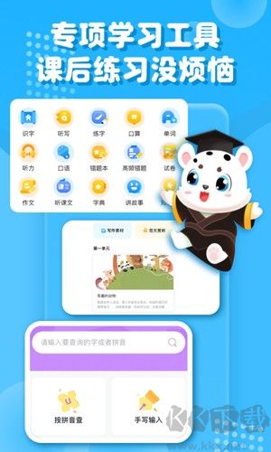 3.多元学习工具包:内含听说读写、作文指导等20余个学习资料包,覆盖全国大部分版本教材,满足多维度学习需求。