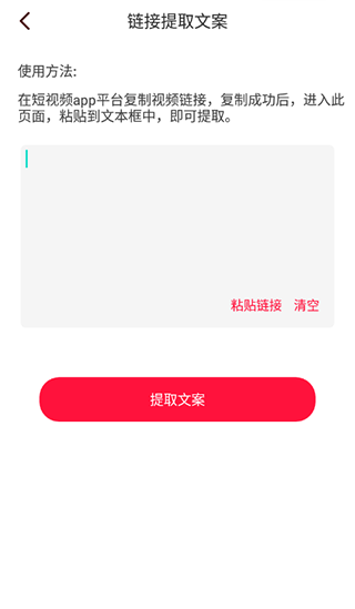 2、找到视频链接并复制到文本框内,点击提取文案即可