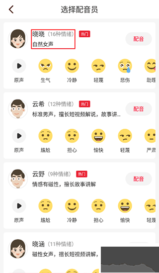 3、选择合适的配音员,会详细标注配音的擅长类型