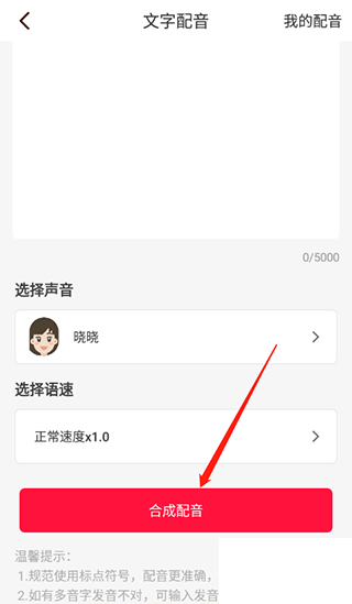 【配音】提取出的文字可一键转换为语音音频,内置多种发音人音色与风格,满足不同场景的配音需求!