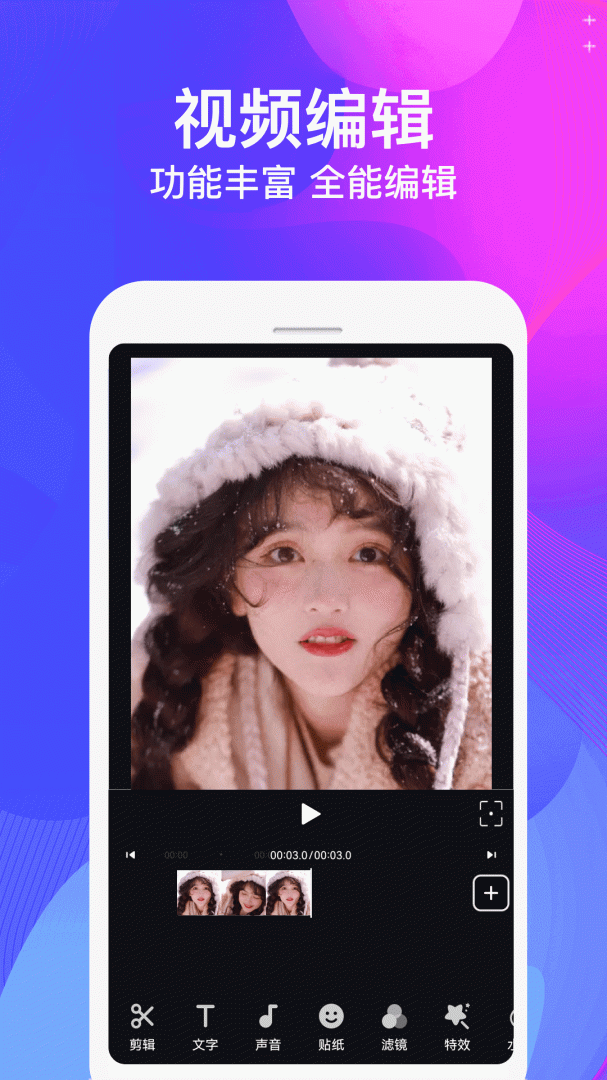 1、支持线上剪辑相册视频与视频素材,可以自由剪辑;