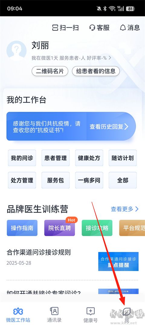 1、启动微医生应用,完成登记与登录,随后选择【我的】界面。