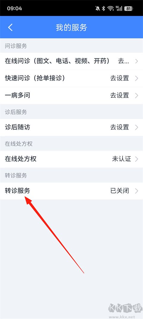 3、于服务配置列表内,点按【转诊服务】功能入口。