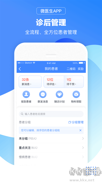 3、【病患管理】医师能为预约挂号、咨询及到诊的病患进行标注、分组与后期病情跟进。