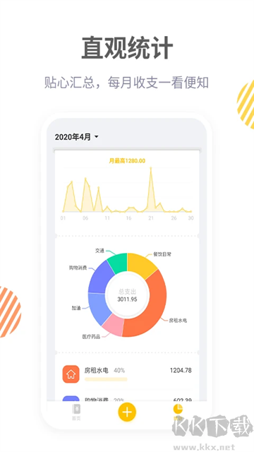 通过收支变化图、分类趋势图、占比排行榜等多种图表形式展示财务状况,帮助用户更好地理解个人财务情况。