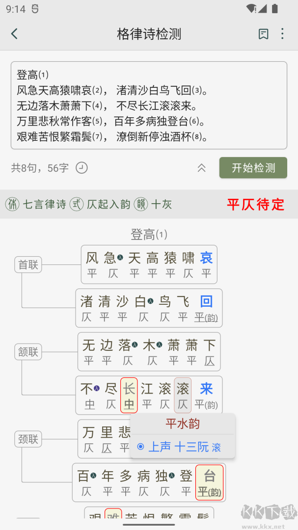 1、可帮助用户轻松完成诗词检测,辅助分析诗词的押韵情况。
