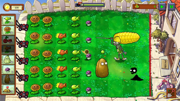 玩法简单易上手,但策略性较强,需要玩家合理安排植物的位置来击退僵尸。