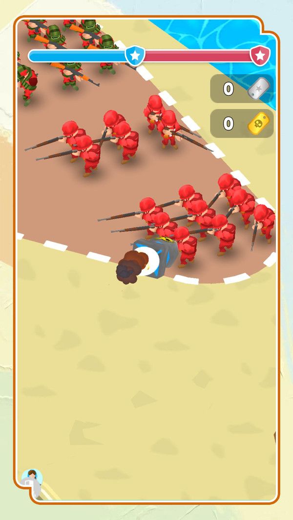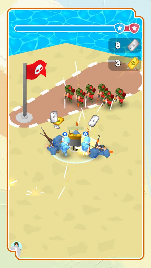 玩家通过屏幕上的摇杆控制角色移动和射击。