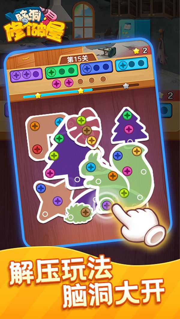 1. 《脑洞修个破屋》是一款模拟经营类游戏,玩家可以在游戏中像设计师一样修建自己的梦想之家。