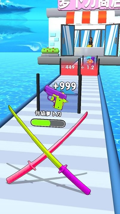 3. 在游戏过程中,玩家可以获得金币和道具,用来升级飞刀和购买更多强力的武器;