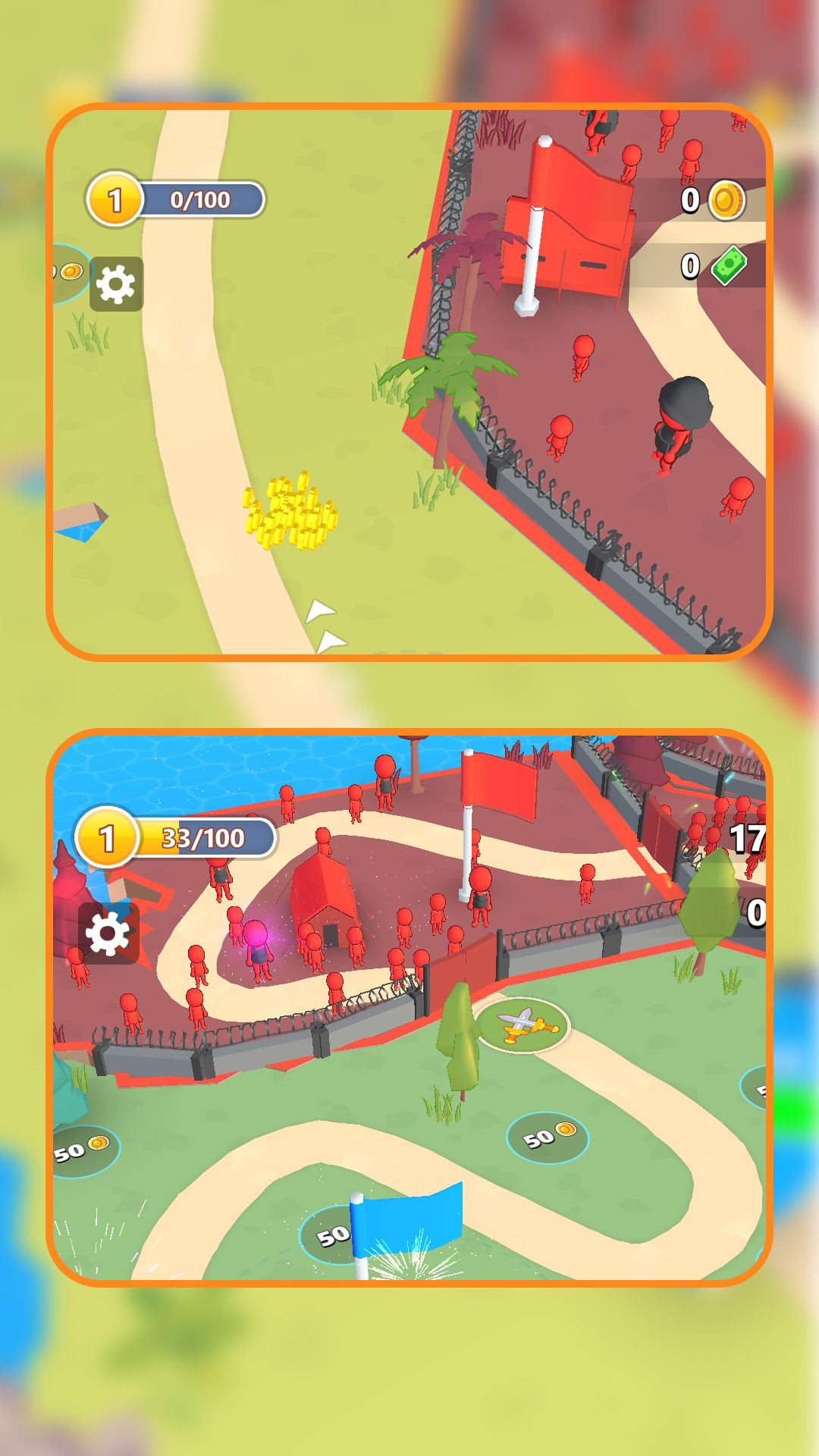 在游戏中可以招募更多小兵,升级装备和技能,提升自己的实力,使自己的军队更加强大。