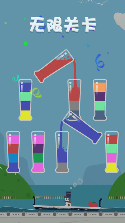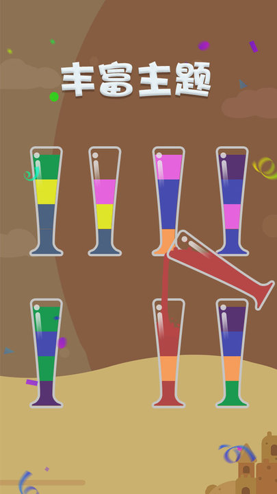 1. 《我倒水贼棒》是一款休闲益智类手机游戏,玩家需要通过控制水杯的倾斜角度,让水流到指定的目标杯中。