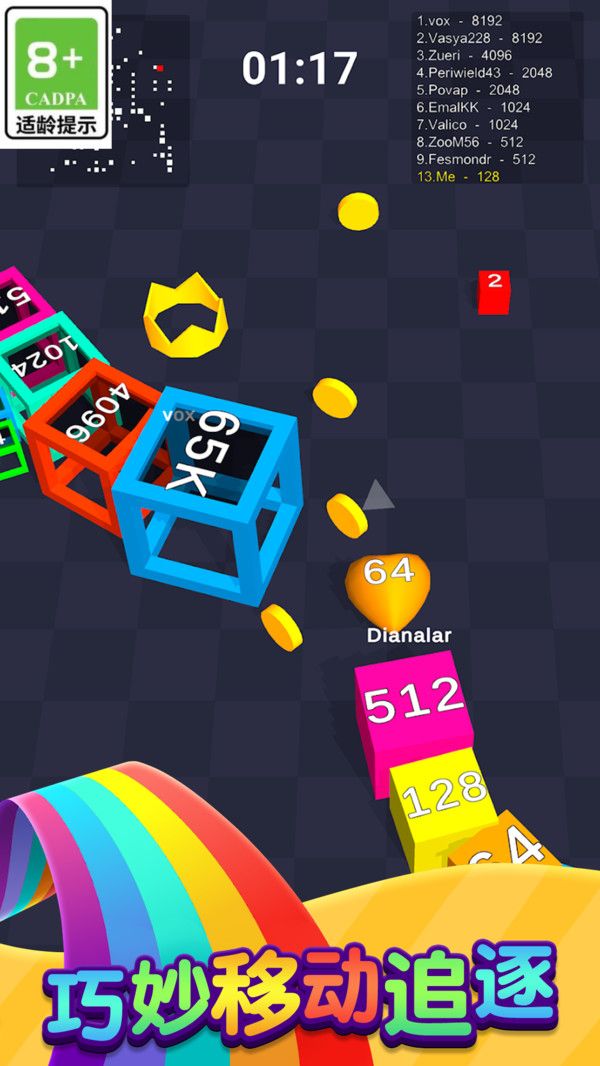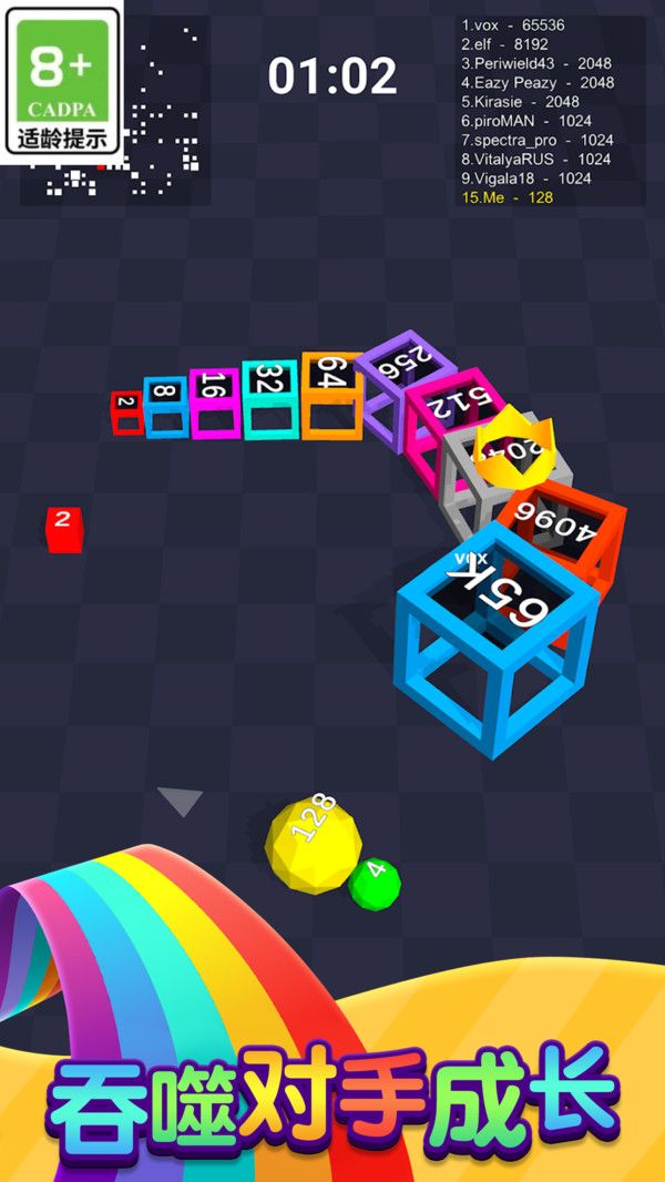 在多人在线对战中,竞争与其他玩家,在地图上奋力生存并吃掉对手的小蛇。