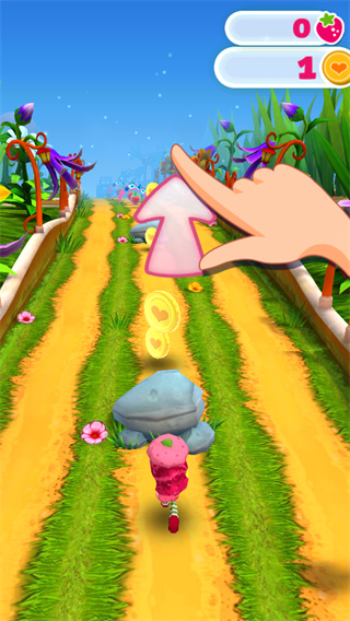 玩家需要控制草莓公主在不断前行的道路上躲避障碍物,收集金币。