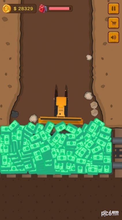 1. 挖掘土地:玩家需要不断点击屏幕上的推土机,使其挖掘土地,获得金币收益。